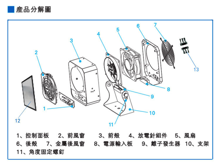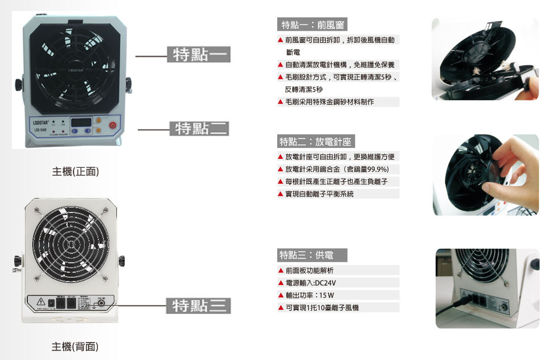*快速維護:前后網罩和放電針均可快速拆卸,方便清潔維護和更換